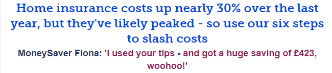 As Money Saving Expert has posted too – Home Insurance is up nearly 30%.