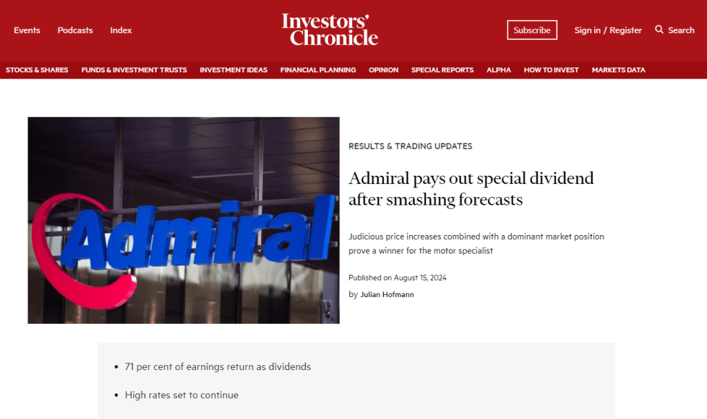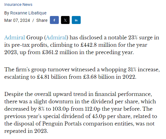 Doing a bit of digging, I went to the recent financial statements for Admiral Group and oh they tell a different story.